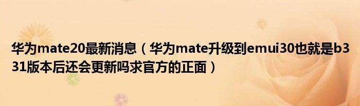 大家好,小常来为大家解答以上问题。华为mate20最新消息,华为mate升级到emui30也就是b331版本后还会更新吗求官方的正面很多人还不知道,现在让我们一起来看看吧!