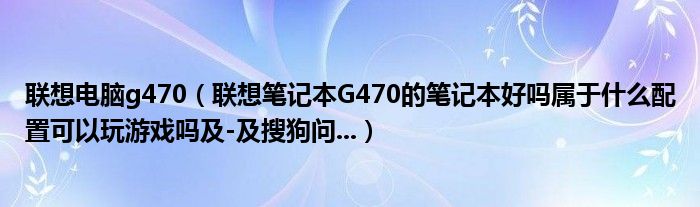 联想电脑g470(联想笔记本G470的笔记本好吗属于什么配置可以玩游戏吗及-及搜狗问...)