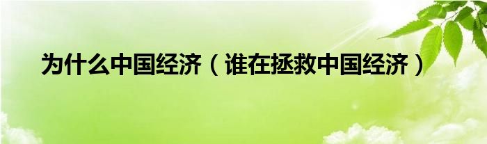 为什么中国经济,谁在拯救中国经济这个很多人还不知道,小飞来为大家解答以上的问题。现在让我们一起来看看吧!