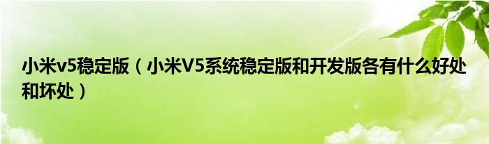 1,小米V5系统稳定版和开发版各有什么好处和坏处:稳定版是面向大众用户的,各项功能比较全面,能够满足消费者日常使用需求,更加着重系统稳定性。开发版是面向发烧友用户的,相对稳定版而言,开发版着重于功能尝鲜和快速更迭,也就是说一些新功能会较先一步登录。不过这并不表示开发版不稳定,因为即使是开发版,也是经过了严格的产品内部测试才会发布的。如果你了解软件开发你就会知道,软件BUG是永远都会存在的,只是有程度的区别。对于开发版MIUI系统来说,其实也已经没有重大bug,主要和新功能都很稳定和好用的。