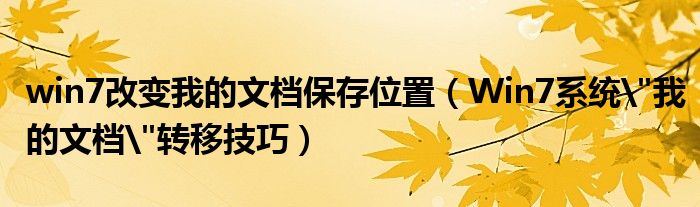 大家好,今天小悦来为大家解答以上问题。win7改变我的文档保存位置,Win7系统"我的文档"转移技巧很多人还不知道,现在让我们一起来看看吧!