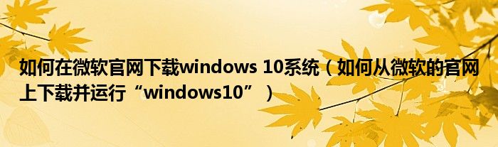 大家好,今天小悦来为大家解答以上问题。如何在微软官网下载windows 10系统,如何从微软的官网上下载并运行“windows10”很多人还不知道,现在让我们一起来看看吧!