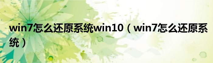 大家好,今天小悦来为大家解答以上问题。win7怎么还原系统win10,win7怎么还原系统很多人还不知道,现在让我们一起来看看吧!