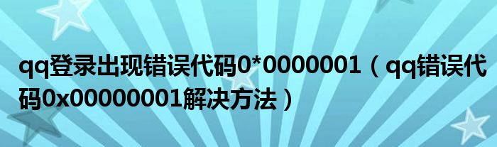 qq登录出现错误代码0*0000001(qq错误代码0x00000001解决方法)