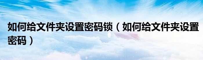 大家好,今天小悦来为大家解答以上问题。如何给文件夹设置密码锁,如何给文件夹设置密码很多人还不知道,现在让我们一起来看看吧!