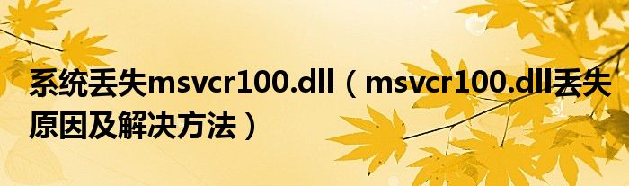 系统丢失msvcr100.dll(msvcr100.dll丢失原因及解决方法)