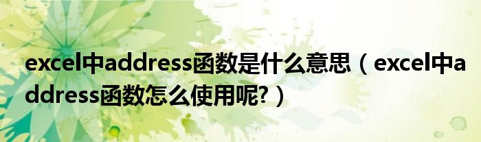 excel中address函数是什么意思(excel中address函数怎么使用呢?)