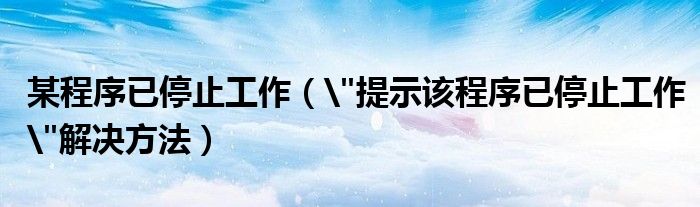 大家好,今天小悦来为大家解答以上问题。某程序已停止工作,"提示该程序已停止工作"解决方法很多人还不知道,现在让我们一起来看看吧!