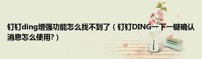 大家好,今天小悦来为大家解答以上问题。钉钉ding增强功能怎么找不到了,钉钉DING一下一键确认消息怎么使用?很多人还不知道,现在让我们一起来看看吧!