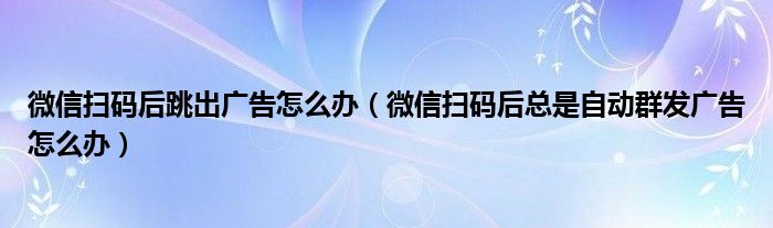 大家好,小太来为大家解答以上问题。微信扫码后跳出广告怎么办,微信扫码后总是自动群发广告怎么办很多人还不知道,现在让我们一起来看看吧!