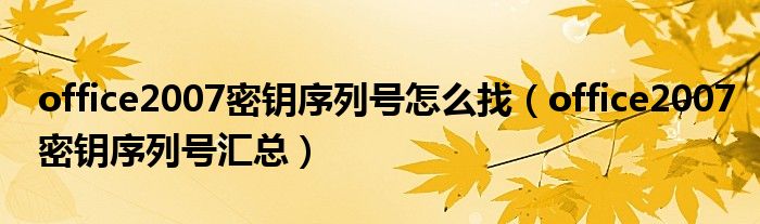 大家好,小太来为大家解答以上问题。office2007密钥序列号怎么找,office2007密钥序列号汇总很多人还不知道,现在让我们一起来看看吧!