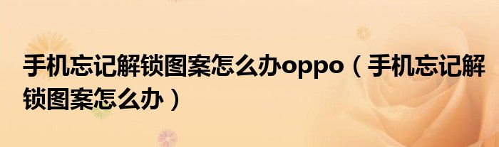 大家好,慧慧来为大家解答以上问题,手机忘记解锁图案怎么办oppo,手机忘记解锁图案怎么办很多人还不知道,现在让我们一起来看看吧!