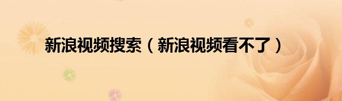 大家好,小飞来为大家解答以上问题,新浪视频搜索,新浪视频看不了很多人还不知道,现在让我们一起来看看吧!
