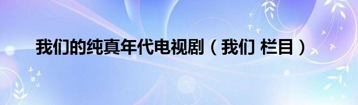 我们的纯真年代电视剧,我们 栏目这个很多人还不知道,小飞来为大家解答以上的问题。现在让我们一起来看看吧!