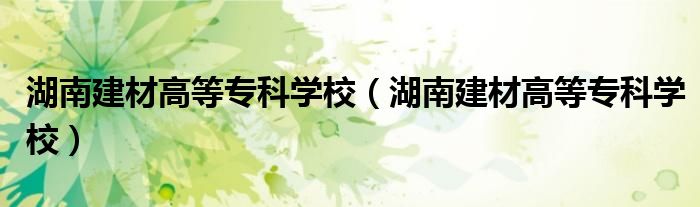 湖南建材高等专科学校,湖南建材高等专科学校这个很多人还不知道,小飞来为大家解答以上的问题。现在让我们一起来看看吧!
