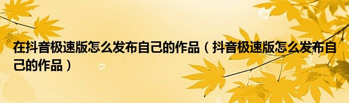 在抖音极速版怎么发布自己的作品(抖音极速版怎么发布自己的作品)