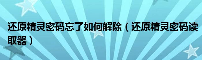 还原精灵密码忘了如何解除,还原精灵密码读取器这个很多人还不知道,小飞来为大家解答以上的问题。现在让我们一起来看看吧!