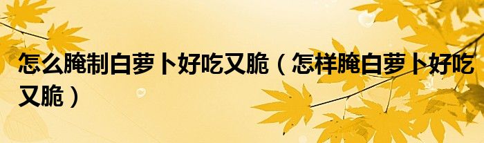 大家好,小晋来为大家解答以下问题,关于怎么腌制白萝卜好吃又脆,怎样腌白萝卜好吃又脆很多人还不知道,今天让我们一起来看看吧!