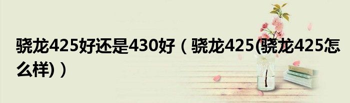 大家好,小常来为大家解答以上问题。骁龙425好还是430好,骁龙425(骁龙425怎么样)很多人还不知道,现在让我们一起来看看吧!