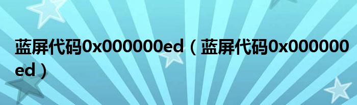 大家好,慧慧来为大家解答以上问题,蓝屏代码0x000000ed,蓝屏代码0x000000ed很多人还不知道,现在让我们一起来看看吧!