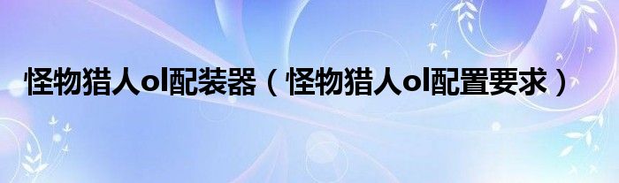 大家好,慧慧来为大家解答以上问题,怪物猎人ol配装器,怪物猎人ol配置要求很多人还不知道,现在让我们一起来看看吧!