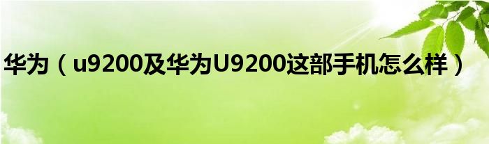 7,华为U9200怎么样用过的来说说看好的加分:如果你想买华为,还不如果去买联想。(华为,手机蛮贵的。联想手机还可以。)我见意你可以去看看联想K2,显示屏4.3,RAM:1G,ROM:4G,CPU:双核1.5