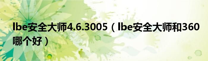 大家好,慧慧来为大家解答以上问题,lbe安全大师4.6.3005,lbe安全大师和360哪个好很多人还不知道,现在让我们一起来看看吧!