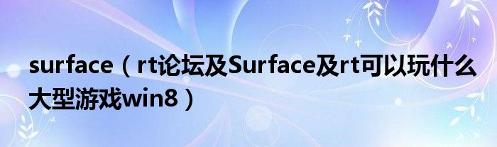 大家好,小常来为大家解答以上问题。surface,rt论坛及Surface及rt可以玩什么大型游戏win8很多人还不知道,现在让我们一起来看看吧!