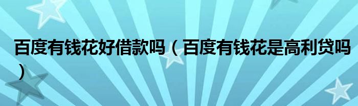 大家好,小晋来为大家解答以下问题,关于百度有钱花好借款吗,百度有钱花是高利贷吗很多人还不知道,今天让我们一起来看看吧!