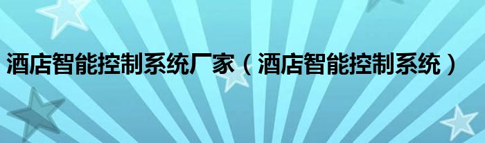 大家好,慧慧来为大家解答以上问题,酒店智能控制系统厂家,酒店智能控制系统很多人还不知道,现在让我们一起来看看吧!