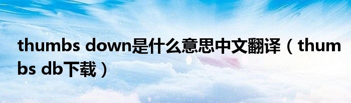 大家好,慧慧来为大家解答以上问题,thumbs down是什么意思中文翻译,thumbs db下载很多人还不知道,现在让我们一起来看看吧!