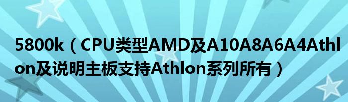 大家好,小常来为大家解答以上问题。5800k,CPU类型AMD及A10A8A6A4Athlon及说明主板支持Athlon系列所有很多人还不知道,现在让我们一起来看看吧!