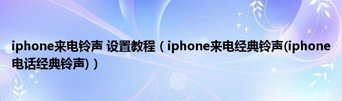iphone来电铃声 设置教程(iphone来电经典铃声(iphone电话经典铃声))