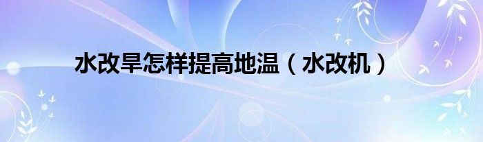 大家好,慧慧来为大家解答以上问题,水改旱怎样提高地温,水改机很多人还不知道,现在让我们一起来看看吧!