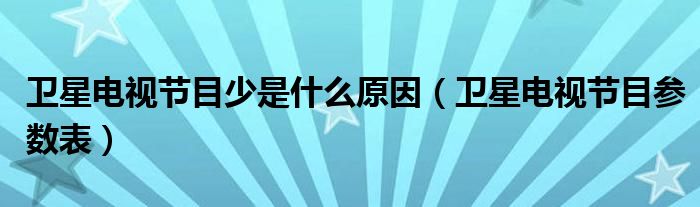 大家好,慧慧来为大家解答以上问题,卫星电视节目少是什么原因,卫星电视节目参数表很多人还不知道,现在让我们一起来看看吧!