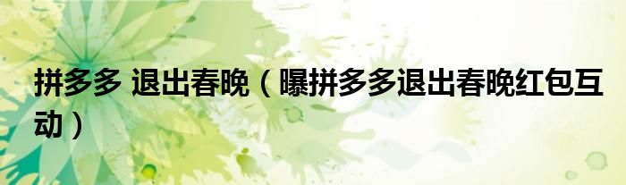 拼多多退出春晚(曝拼多多退出春晚红包互动)