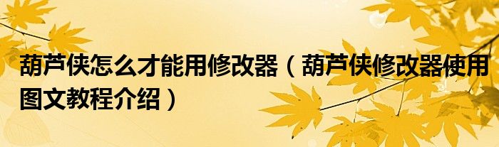 葫芦侠修改器怎么用: