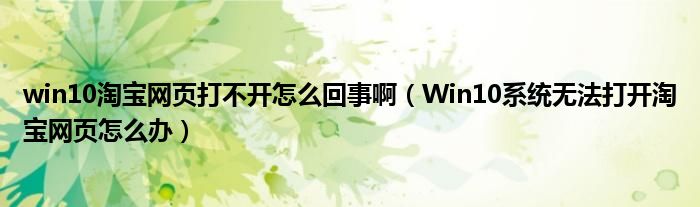 大家好,今天小悦来为大家解答以上问题。win10淘宝网页打不开怎么回事啊,Win10系统无法打开淘宝网页怎么办很多人还不知道,现在让我们一起来看看吧!