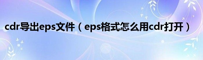 大家好,今天小悦来为大家解答以上问题。cdr导出eps文件,eps格式怎么用cdr打开很多人还不知道,现在让我们一起来看看吧!