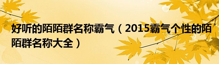 以上就是2015霸气个性的陌陌群名称大全,谢谢阅读!