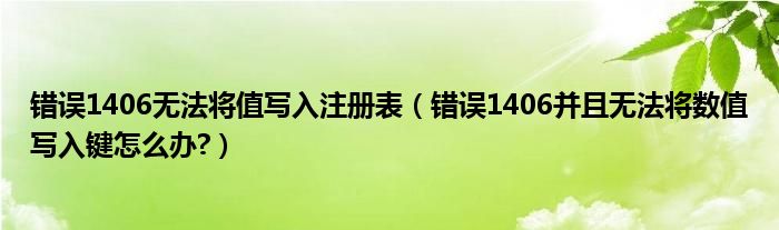大家好,今天小悦来为大家解答以上问题。错误1406无法将值写入注册表,错误1406并且无法将数值写入键怎么办?很多人还不知道,现在让我们一起来看看吧!