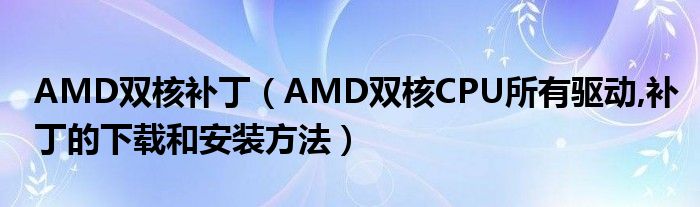 大家好,今天小悦来为大家解答以上问题。AMD双核补丁,AMD双核CPU所有驱动,补丁的下载和安装方法很多人还不知道,现在让我们一起来看看吧!
