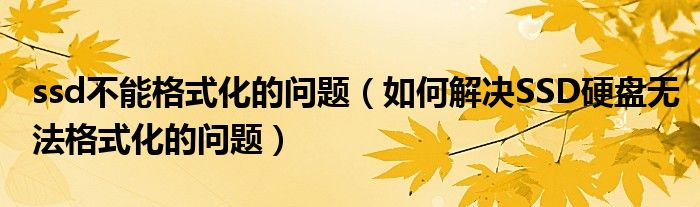 大家好,今天小悦来为大家解答以上问题。ssd不能格式化的问题,如何解决SSD硬盘无法格式化的问题很多人还不知道,现在让我们一起来看看吧!