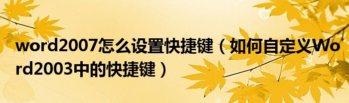 大家好,今天小悦来为大家解答以上问题。word2007怎么设置快捷键,如何自定义Word2003中的快捷键很多人还不知道,现在让我们一起来看看吧!