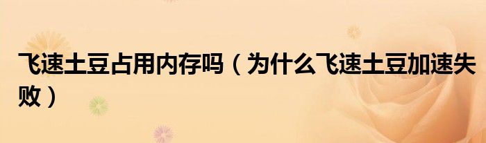 大家好,今天小悦来为大家解答以上问题。飞速土豆占用内存吗,为什么飞速土豆加速失败很多人还不知道,现在让我们一起来看看吧!
