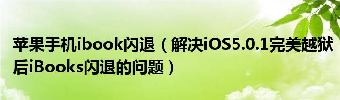 苹果手机ibook闪退(解决iOS5.0.1完美越狱后iBooks闪退的问题)
