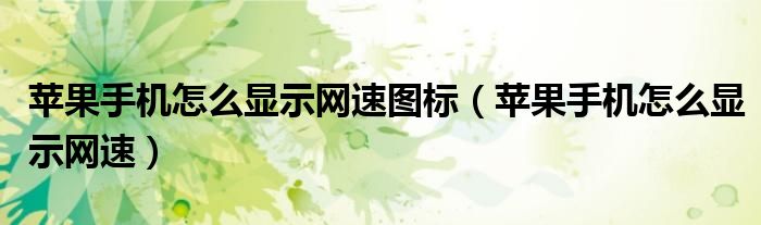 大家好,小晋来为大家解答以下问题,关于苹果手机怎么显示网速图标,苹果手机怎么显示网速很多人还不知道,今天让我们一起来看看吧!