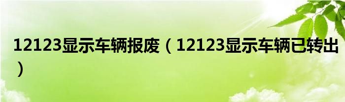 大家好,跳跳为你解答以上问题。12123显示车辆报废,12123显示车辆已转出这个问题很多人还不知道,现在让我们一起来看看吧!