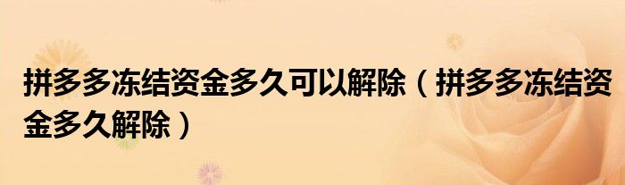 大家好,跳跳为你解答以上问题。拼多多冻结资金多久可以解除,拼多多冻结资金多久解除这个问题很多人还不知道,现在让我们一起来看看吧!