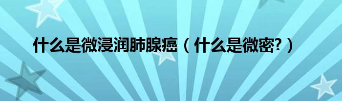 大家好,今天小悦来为大家解答以上问题。什么是微浸润肺腺癌,什么是微密?很多人还不知道,现在让我们一起来看看吧!